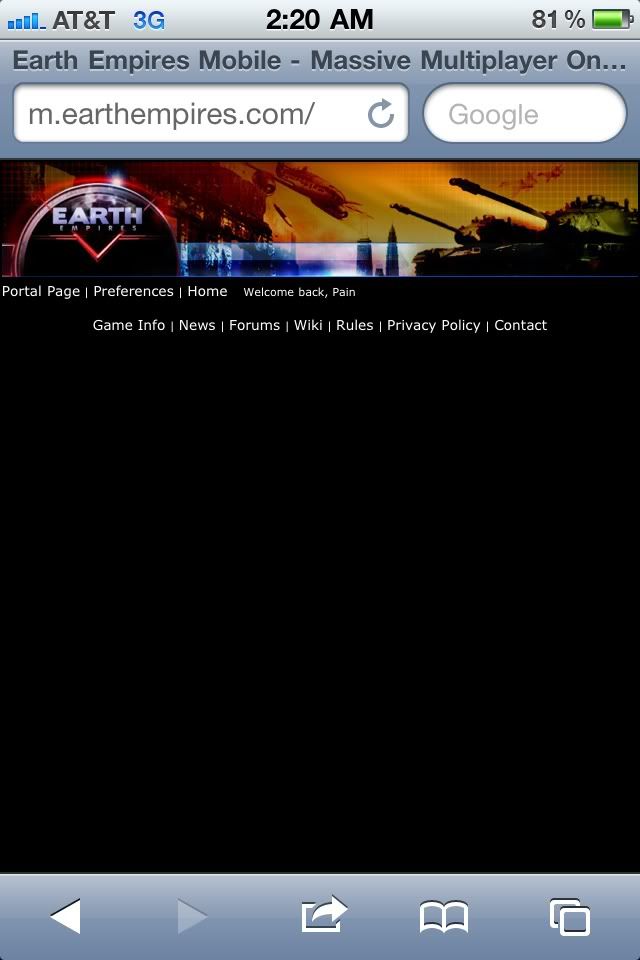 what i noticed when trying to log in is that when i log into team the url in the address bar shows up as m.earthempires.com and when i log into any other server it shows up as, for example, express.m.earthempires.com or ffa.m.earthempires.com.